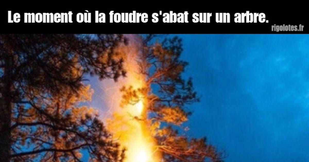 Le moment où la foudre s'abat sur un arbre.