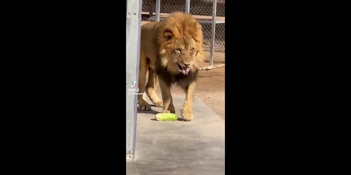 Le lion essaie de manger la salade et le regrette automatiquement.