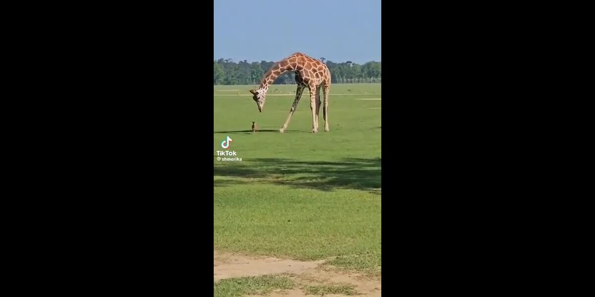 La grande girafe rencontre le petit chevreuil.