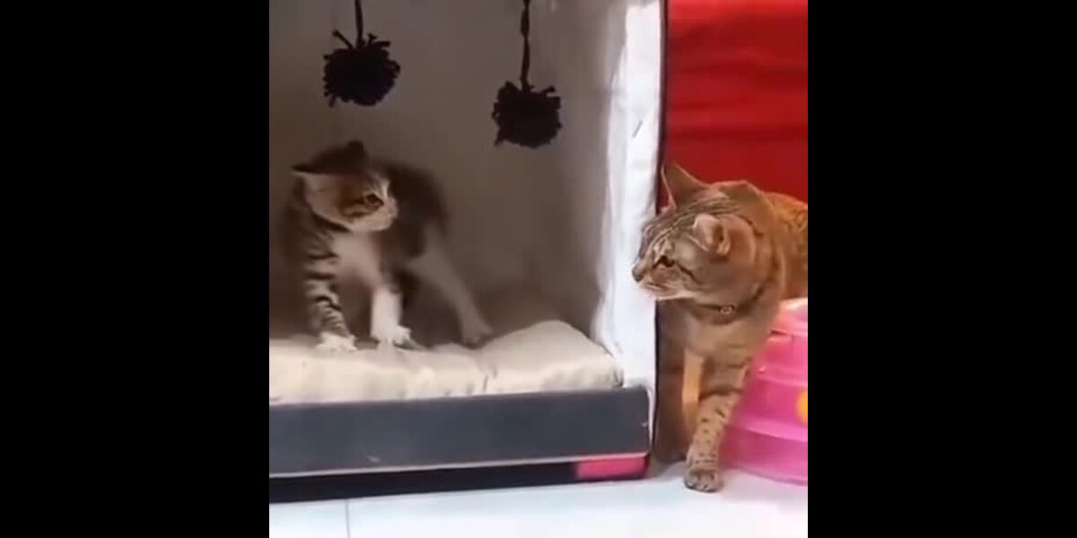Le chaton sauvé apprend tout juste à faire confiance à sa mère adoptive.