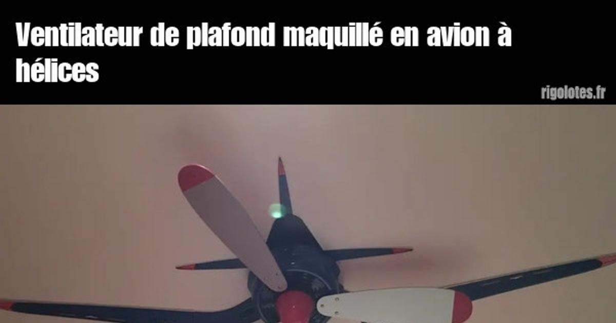 Ventilateur de plafond maquillé en avion à hélices