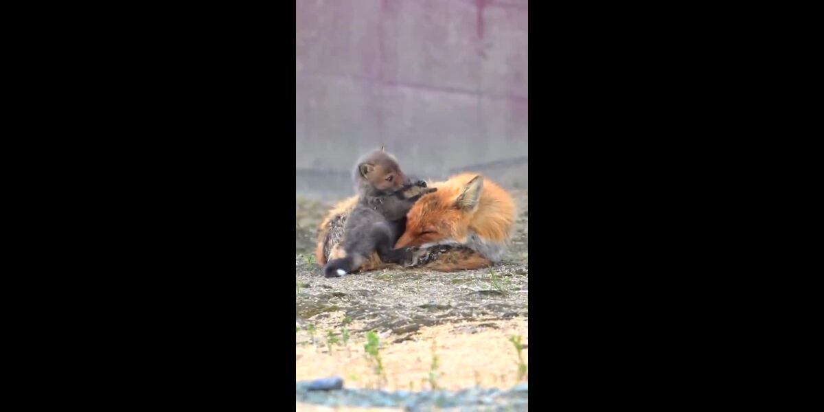 Une renarde et son enfant partagent des moments d'amour.