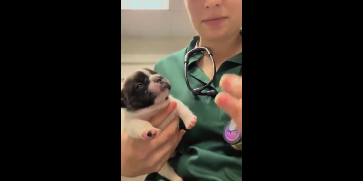 Un chiot dramatique reçoit ses médicaments.