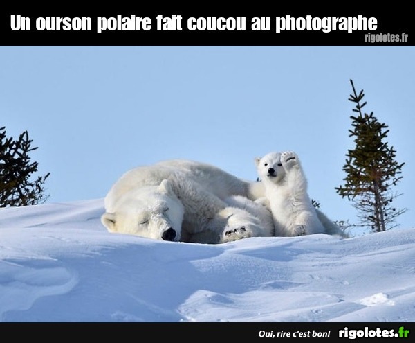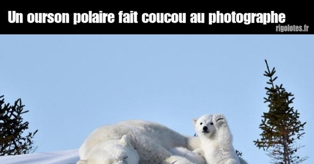 Un ourson polaire fait coucou au photographe