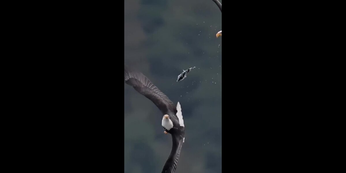 Le mâle aigle remet sa proie à la femelle, qui l'attrape en vol.