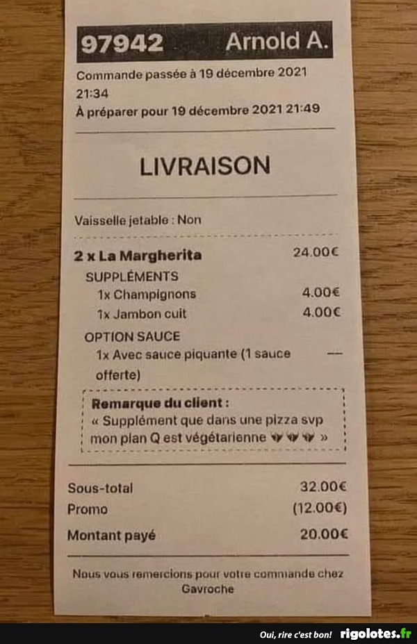 végétariens, Facture, restaurant