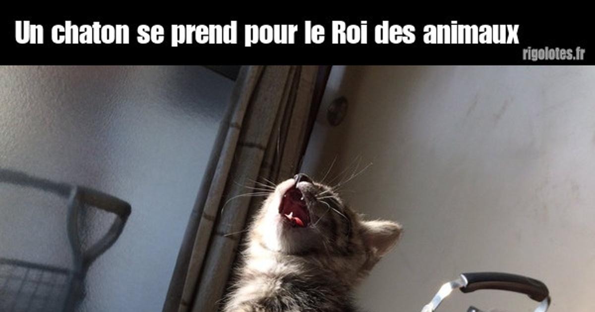 Un chaton se prend pour le Roi des animaux