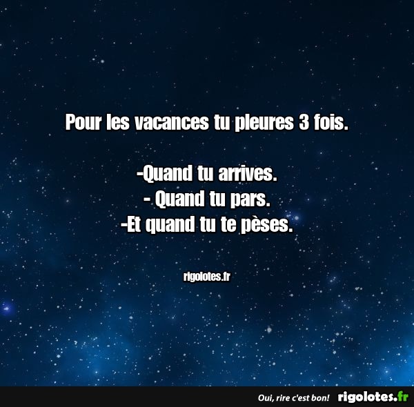 Pour les vacances tu pleures 3 fois.