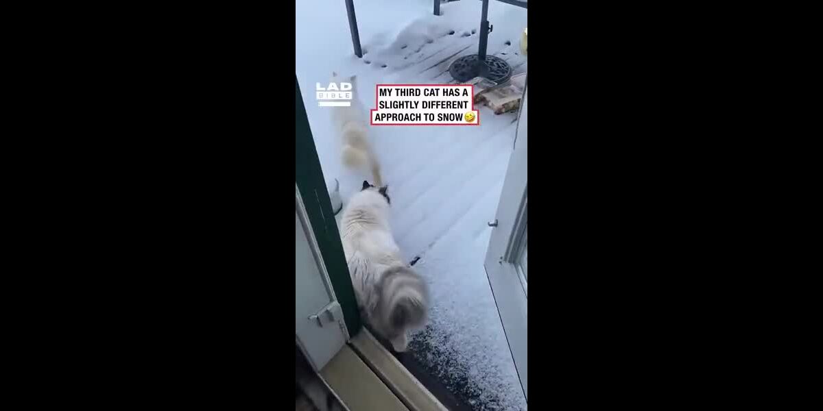 Le troisième chat a une approche légèrement différente de la neige.