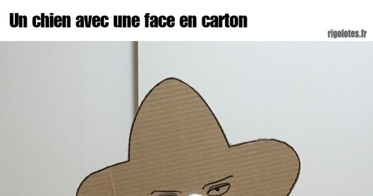 Un chien avec une face en carton