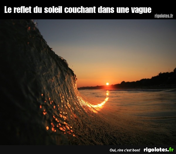Le reflet du soleil couchant dans une vague