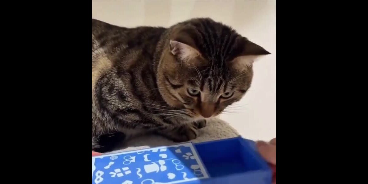 Réaction adorable d'un chat à un tour de magie