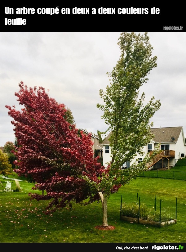 Un arbre coupé en deux a deux couleurs de feuille