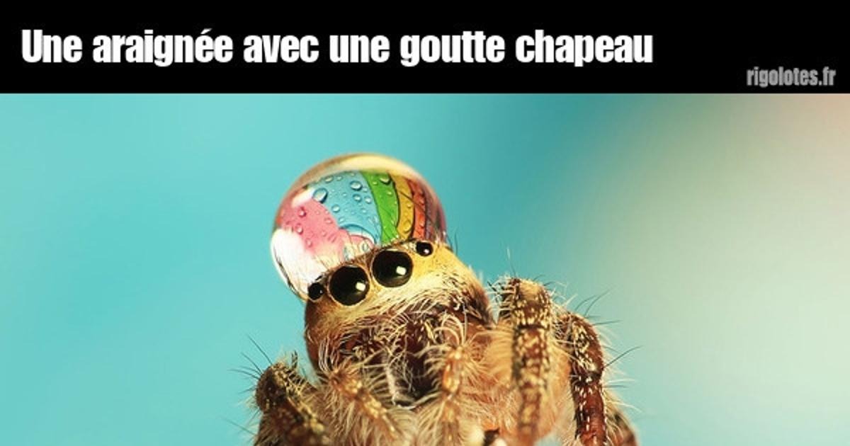 Une araignée avec une goutte chapeau