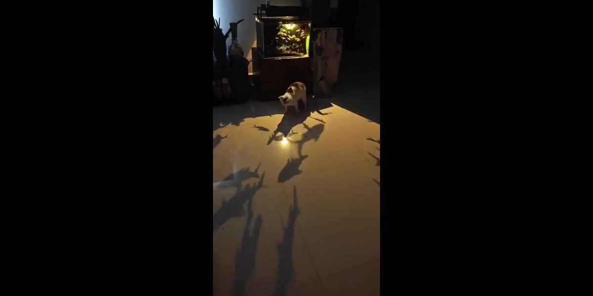 Le chat est content et les poissons sont sains et saufs.