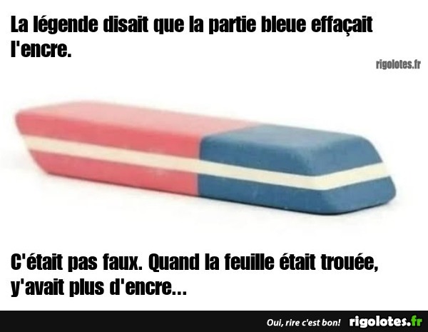 La légende disait que la partie bleue effaçait l'encre.