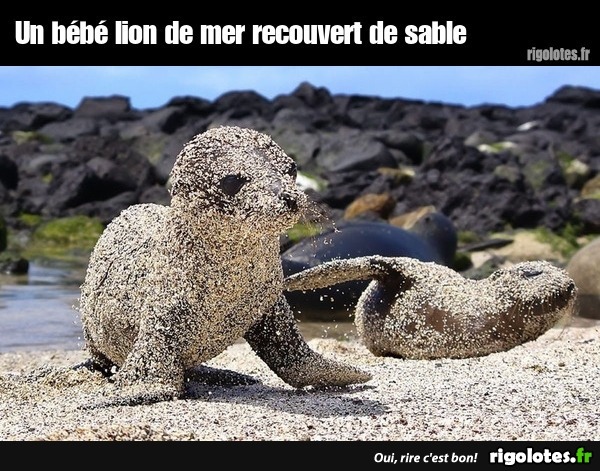 Un bébé lion de mer recouvert de sable