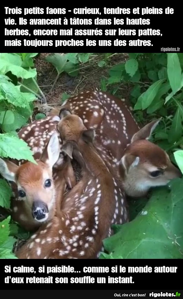 Trois petits faons , curieux, ...